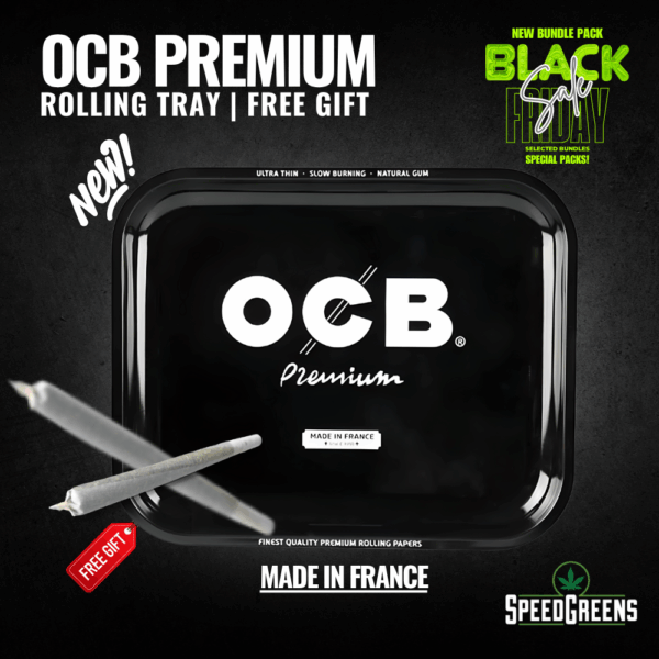 Bonus free OCB Rolling Tray & Papers for convenience and style.